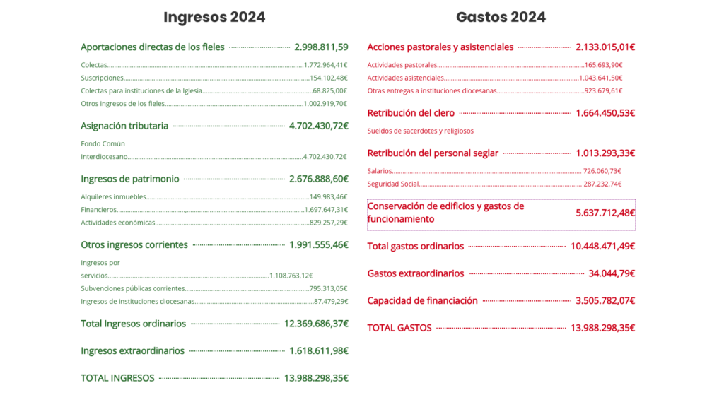 El pago de las retribuciones anuales del conjunto de los obispos españoles se coordina desde la Conferencia Episcopal Española, destinando para cada uno de ellos un total de 19.600€ anuales, divididos en 14 pagas.